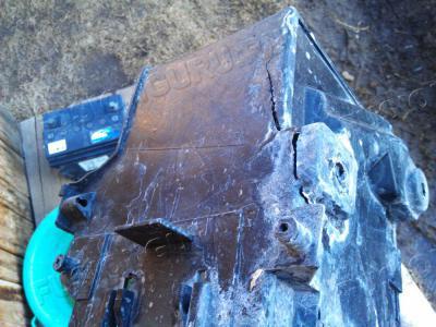 Сама коробка АКБ от кислоты очень пострадала, пластик расслаивается