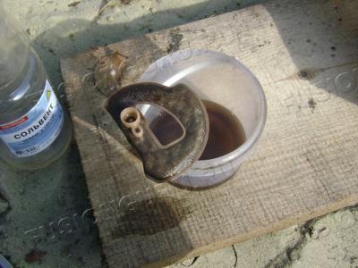 Ни на чем, летом буду снимать бак, прокатимся по магазинам для интереса, мож чего подберем, а так помоем и все, главное промыть хорошо, если фильтр не порванный зачем его менять.