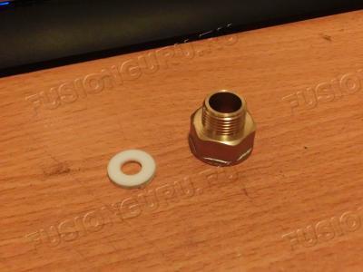 Данный штуцер закручивается от руки и прекрасно держит давление благодаря фторопластовой прокладке.
