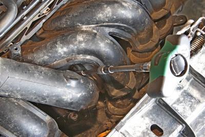 Один из удлинителей - гибкий, удалось выкрутить все болты не снимая впускной трубы.