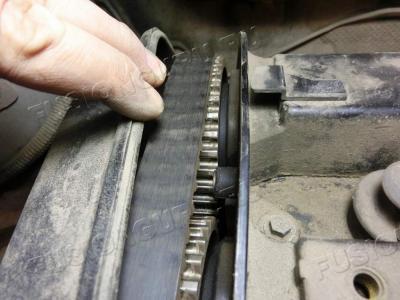 5. Снять нижнюю часть крышки ремня ГРМ, снять натяжитель ремня ГРМ. Снять ремень ГРМ.