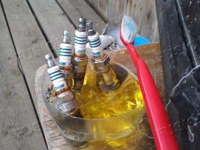 и промыл водой, отмылось немного на самом деле, прогрел свечки на газе дабы испарить воду и приступил к мытью очистителем карбюратора, вот он справился на ура быстро легко и чисто смыл нагар.