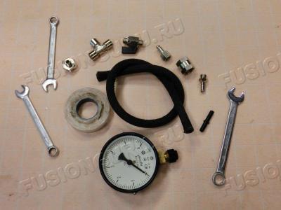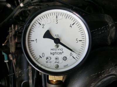 Перекрываем краник на нашем приборе и включаем зажигание. Мне пришлось 2 раза включить. Так мы измеряем давление на насосе.