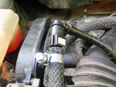 Подключать к системе манометр надо на входе в топливную рампу. Вот здесь.