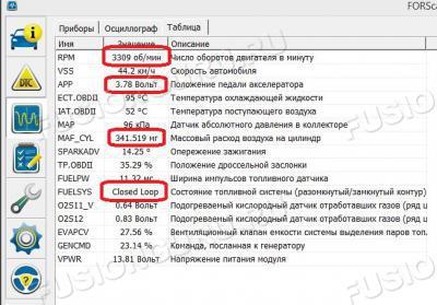 2. Далее идет опрос датчиков: датчика педали газа, датчика кислорода, датчика температуры ОЖ, датчика температуры воздуха на впуске и т.д.