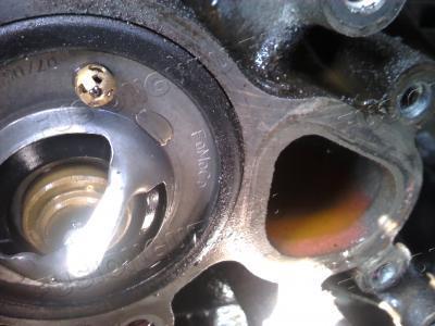 Ставим прокладки на место, термостат на своё место, я промазал ещё на корпусе по двум кругам (восьмёркой получилось) герметиком, устанавливаем корпус и прикручиваем. Т.к. высказывалось предположение, что пластиковый корпус со временем от перепада температур может корёжить, я не стал рисковать оставлять просто прокладки, дабы не возвращаться к этому занятию ещё раз.