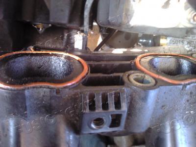Ну и напоследок, вид впускного коллектора на двигателе и патрубке (кверх ногами, фотал сверху) слева направо. Промыл всё бензином и поставил обратно