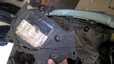 Менять одназначно все ролики и ремни, и обязательно помпу, и под термостат прокладку вместе с термостатом. Я облажался по полной, не стал менять помпу. И этим летом возвращаясь из славного города Мурманск в родной Питер, услышал странный звук напоминающий шорканье. Остановившесь и облазив всю машину, ни чего не нашел. Так и поехал дальше, вспомнив хорошую поговорку, "хороший шум наружу вылезет". Останавливался через каждые 50-100 км посмотреть мож чего да отвалилось, но ни чего не отваливалось и слава богу. Приехав домой, поехал в гараж, открыл копот и простите за выражение, просто "ох...ел". Фотки прилагаю. Все дело в не замененой помпе, ее просто перекосило, и ремешок ГРМ поехал в сторону правого крыла вытачивая на своем пути пластмассовый кожух защиты. До загнутых клапанов оставалось 9 мм ширины ремня.